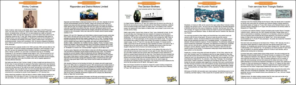 The Friends of Sowerby Bridge Railway Station have researched and produced information boards on people and events that have connections with Sowerby Bridge. These are displayed on the Leeds platform, the Manchester platform and in the Brontë Garden. Hopefully station users will find them of interest whilst they wait for their trains.